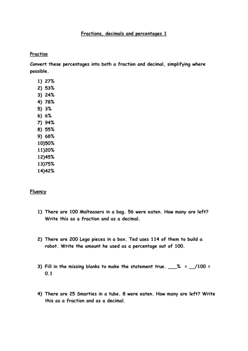 Fraction to percentages worksheet tes Author. Fraction to percentages worksheet tes arrow_back Back to Fraction Decimal and Percentage Equivalence If you want a complete lesson a Tarsia jigsaw or a fun and engaging lesson activity then you have come to the right place. Report this resource to let us know if it violates our terms and conditions.